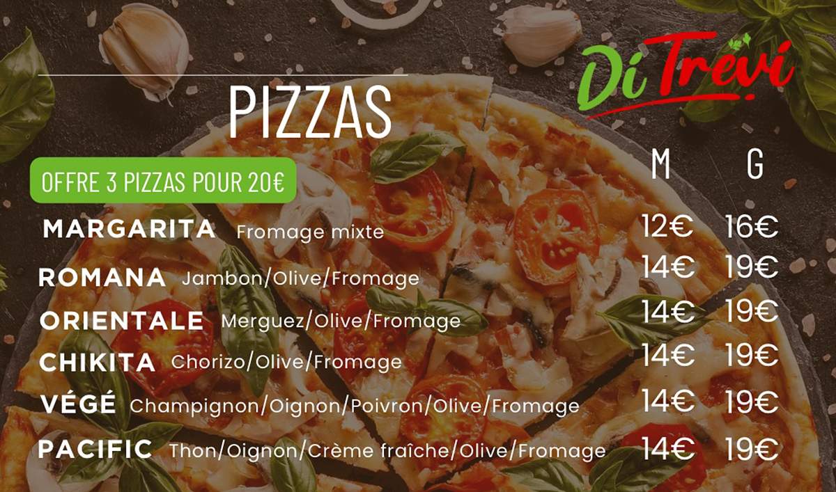 Pour une pizza savoureuse, passez votre commande chez Di Trevi Food !